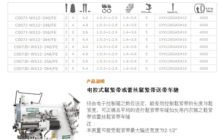 C007J-W512,C007JD-W512 電控式鬆緊帶或蕾絲鬆緊帶送帶車縫