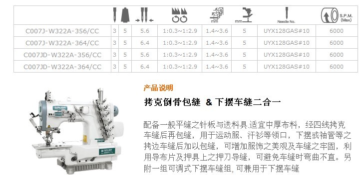 C007J-W322A,C007JD-W322A 拷克倒骨包縫 & 下擺車縫二合一