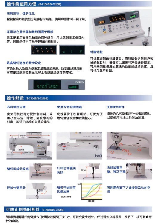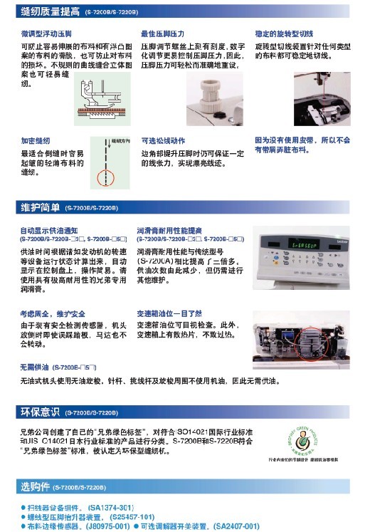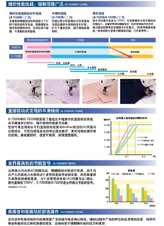 · 針送布機制保證了平滑送布。 · 潔凈無油污的縫紉。 · 具有直接驅(qū)動系統(tǒng)的暢快縫紉。 · 節(jié)能機型。 針桿無油/微油 用于中厚面料/厚面料 最高縫紉速度:4,000-5,000 rpm 最大針距:4.5-5.5 mm 抬壓腳高度:6-16 mm