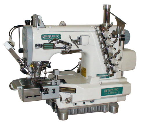 將環形平織鬆緊帶與衣物接縫適用于男女內褲褲腰之鬆緊帶縫合,配合右切刀修布裝置,更能提高縫製品質