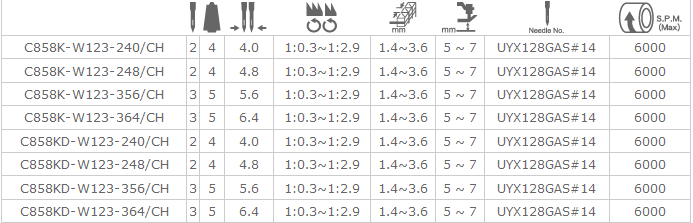 本機型為雙面飾厚布用環縫筒車之基本機型,可裝配附件進行多種功能車縫 例如 : 內衣褲、運動衫接縫及下擺車縫(附可調式下擺車縫組)