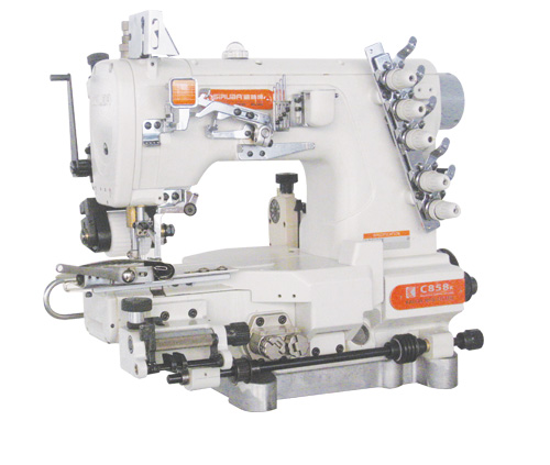經(jīng)由齒輪控制箱之控制,能有效控制松緊帶之松緊度,配合三折或二折折布喇叭及松緊帶壓縫,可精確完美的進行短褲,內(nèi)褲等褲腳及褲頭之松緊帶折縫。