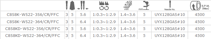 經由齒輪控制箱之控制,能有效控制松緊帶的長度與松緊度,可正確且平均的進行松緊帶縫紉,加附右切刀修布裝置氣動吸屑, 能于車縫前將布修齊,可增加縫製品質,如女用內衣褲之松緊帶或蕾絲松緊帶車縫