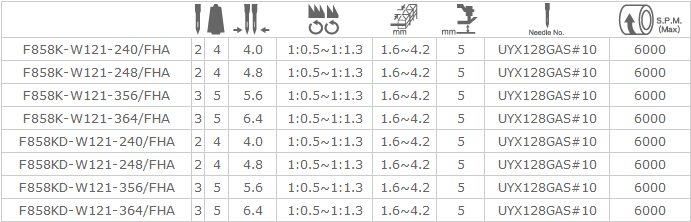 本機型為雙面飾薄布用環縫平車之基本機型,可裝配附件進行多種功能車縫