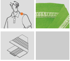 適宜中厚至厚布料經四線拷克車縫后再包縫,用于運動服、休閒服等包飾縫,在針板前端有導引器能把直縫的針跡,均勻分開增加車縫的美觀