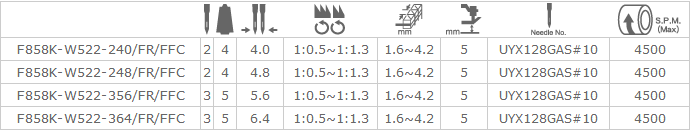 經由齒輪控制箱控制松緊帶的長度與松緊度,可正確且平均的進行松緊帶車縫,附右切刀修布裝置,更能提高車縫品質,適用于女內衣褲之松緊帶或蕾絲松緊帶車縫