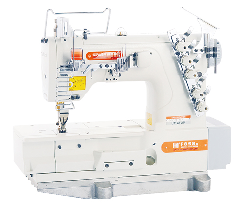 本機係將拷克后之拷克骨縫上布條以補強及增加美觀之用,如男內褲、休閒褲等之車縫