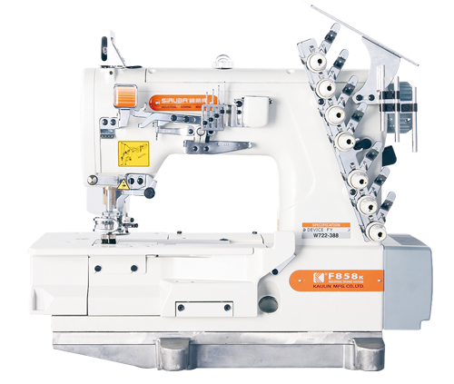 本機為三針三勾針,可同時縫合褲袋內(nèi)里與表布并強化車縫處之牢固,增加美觀提高效率,適用于西褲、工作褲等
