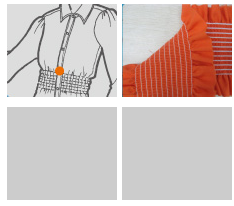 適用于女皺摺連身衣裙等腰邊鬆緊線皺摺之滾邊,如女用襯衫、游泳衣、枕頭套、兒童衫等均能車縫順暢。 注 : 針線用伸縮鬆緊帶線 (橡皮線),以勾針為勾線功能不穿線,為101車縫式樣