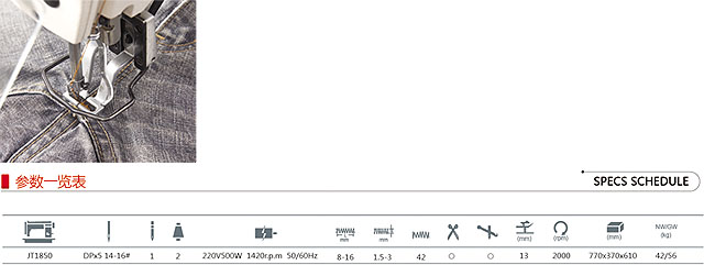 全機(jī)械結(jié)構(gòu)啟動,縫制、剪線、停車一次性完成。適用于服裝(牛仔)各受力部位加固用。根據(jù)布料的需求進(jìn)行派生機(jī)型的選擇。