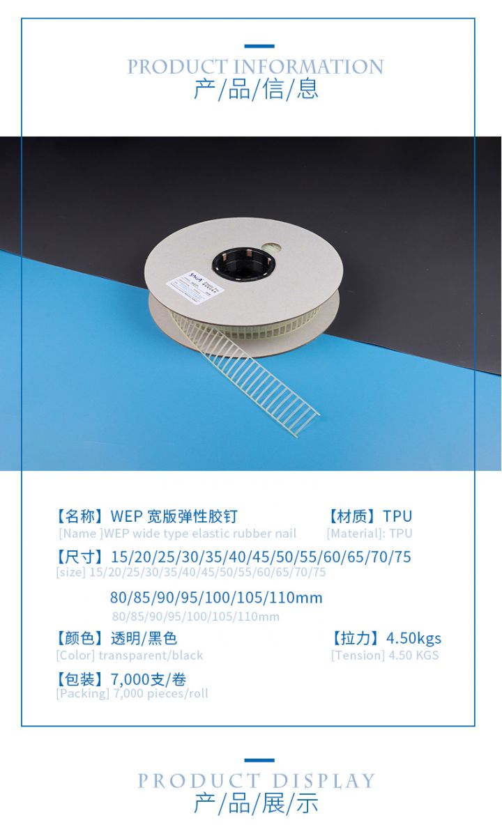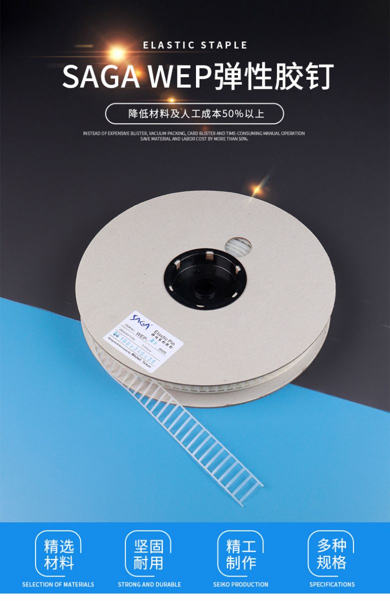裝:10000支/卷 | 拉力:2.0 KG | 適用范圍:小五金、玩具、 廚具、家居用品等包裝固定 |