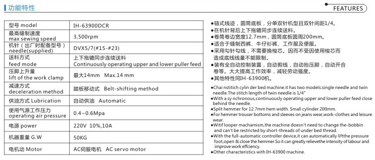 IH-63900DCR 電腦自動剪線“鏈式”轆腳機
