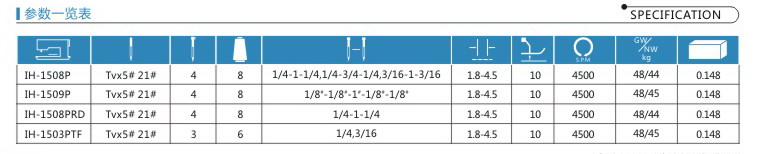 IH-1508P/1508PR/1508PRD/1509P 1-4針平臺型彎針橫向雙重環縫鏈式褲腰縫紉機系列