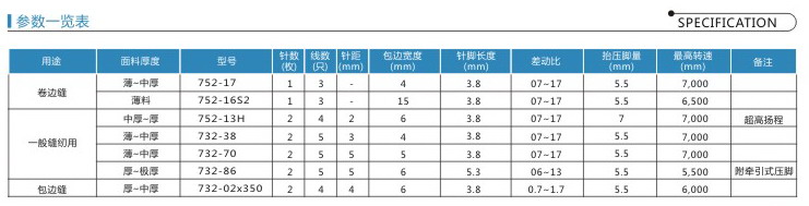 產品特點:高速、低噪音、啟動力矩小;外觀漂亮、操作簡易;線跡穩定、美觀、理想、且調整方便。適用于褲子、睡衣、襯衫、運動服等包縫業。