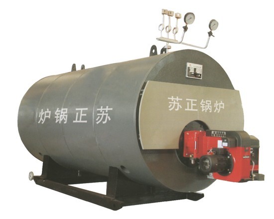 “蘇正”臥式燃油燃氣熱水鍋爐分中心回焰二回程和三回程全濕背結構。二回程火管式鍋爐,由波形爐膽,光管或螺紋管中心對稱布置構成受熱面。高溫煙氣由小煙室轉彎進入煙管到前煙箱再進入后煙箱經煙囪排入大氣。