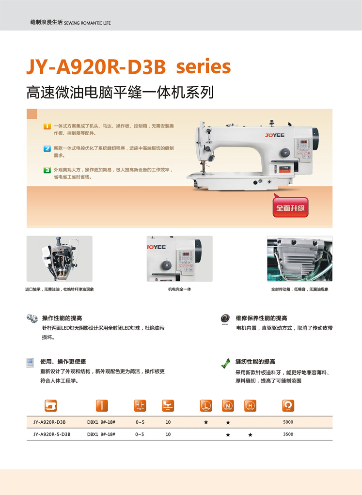 熱門產品: JY-A520A高速帶刀平縫機   JY-A910-D3B直驅微油電腦平縫機   JY-A988-D7直驅自動剪線平縫機   JY-D852-D3自動供油高速雙針平縫機   JY-D855-D3自動供油針桿分離高速平縫機