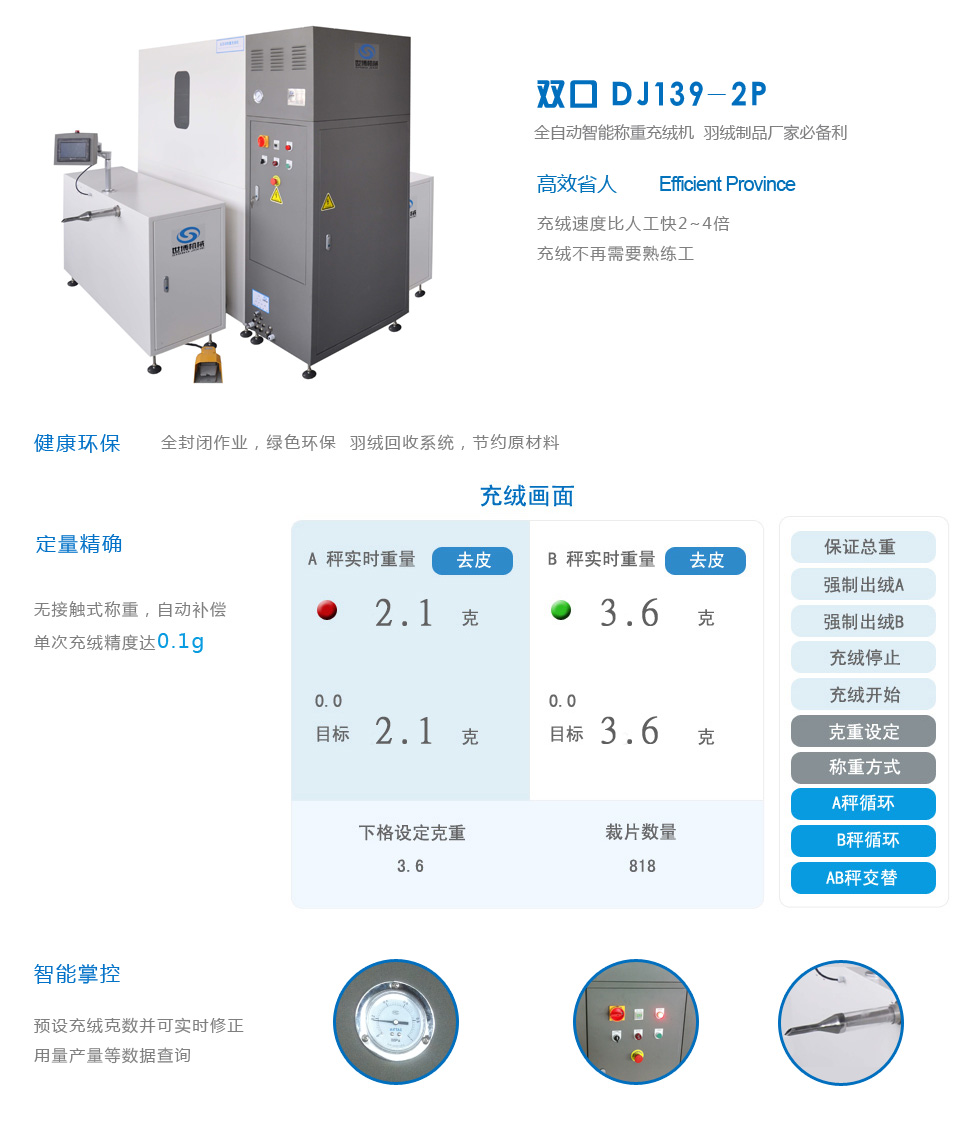 世博全自動稱重充絨機,電腦充絨機DJ139-2P