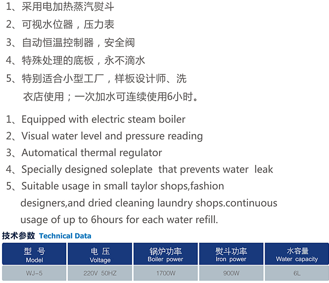 小型電加熱蒸氣鍋爐連熨斗 WJ-5