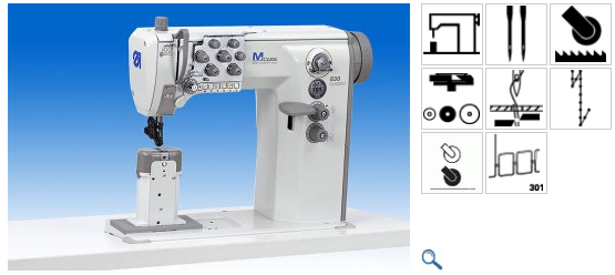 Machines are equipped with electropneumatic seam backtacking and presser foot lift, enabling to sew thickmaterials easily.