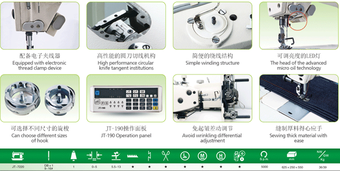 經(jīng)過大幅度改良的JT-7220系列,從機(jī)器的外觀、工作界面、整機(jī)震動、以及噪聲控制方面都有卓越的進(jìn)步。使用內(nèi)置式伺服電機(jī)直接驅(qū)動,實(shí)現(xiàn)了機(jī)器的快速啟動和制動的精確度。同時采用先進(jìn)的電腦控制技術(shù),性能穩(wěn)定,抗干擾能力強(qiáng),絕對是有油直驅(qū)電腦縫紉機(jī)的典范。