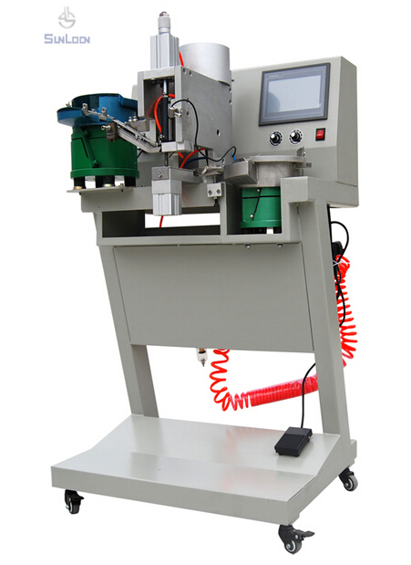 3、配備轉流式珠料桶,雙震動盤輸送四爪釘及各種形態的珠飾物。使釘及珠飾品在高速震動下順暢完成釘珠鉚合。大大提高了生產速度。
