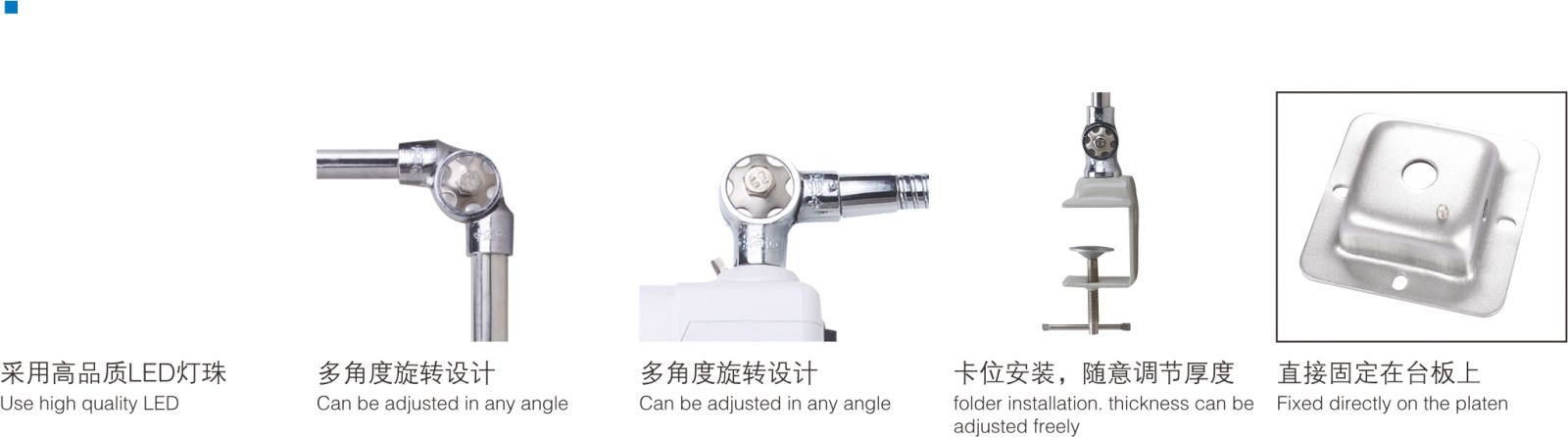 ZHT-98TS(LED) 功率:7W 電壓:220V(380V/110V) 頻率:50Hz-60Hz 尺寸:220×330mm 臺夾:0×50mm 安裝:可直接夾在臺板上的任何地方 接線方式:電機開關(可選裝插頭) 用途:適合各種型號縫紉機