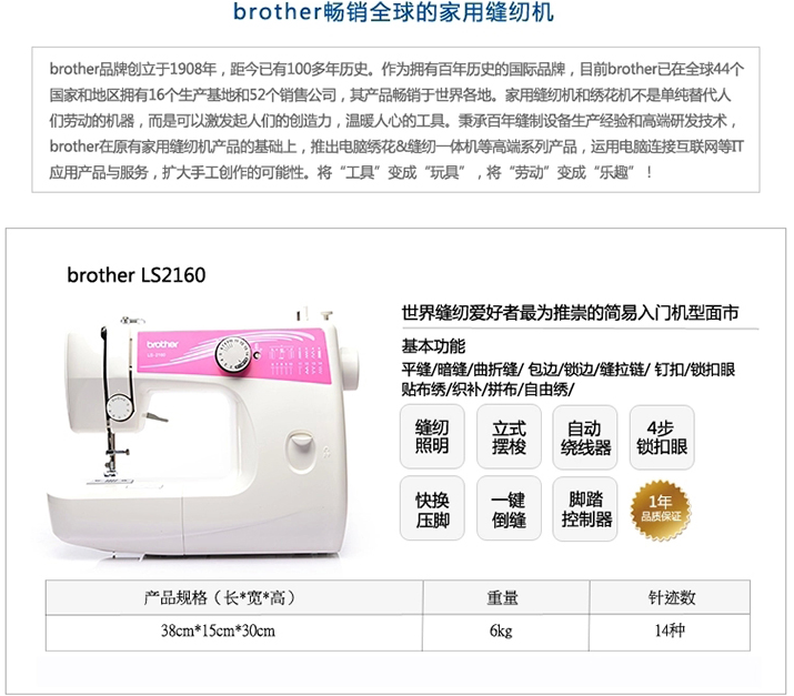 兄弟牌LS2160家用縫紉機電動縫紉機多功能鎖邊
