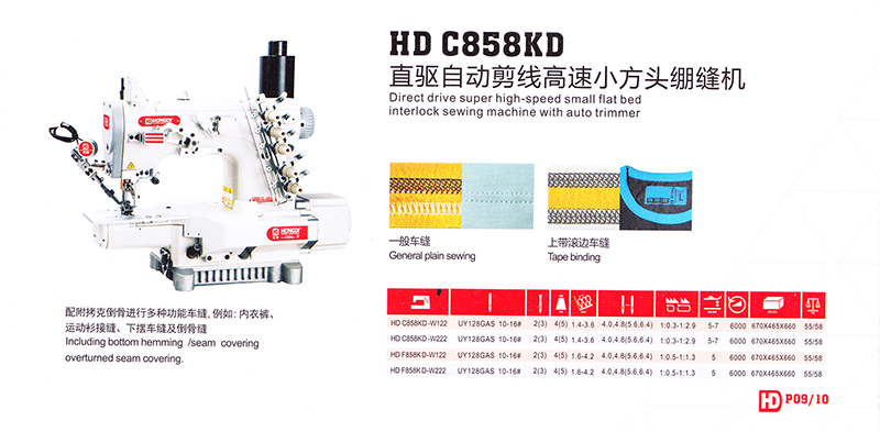 HD-C858KD直驅自動剪線高速小方頭繃縫機