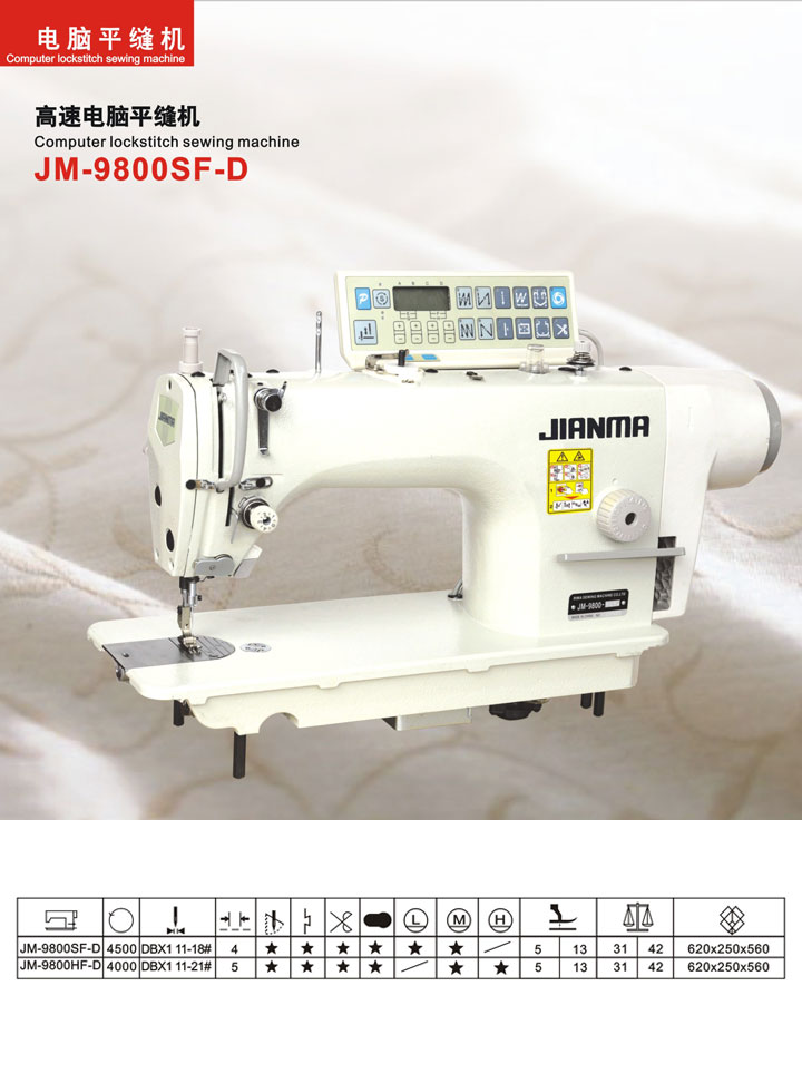 本機使用內置式伺服電機直接驅動,同時采用先進的電腦控制技術,性能穩定,抗干擾能力強,具有自動停針、剪線、撥線、倒縫、抬壓腳(選裝)等所有功能,能適應不同面料生產。