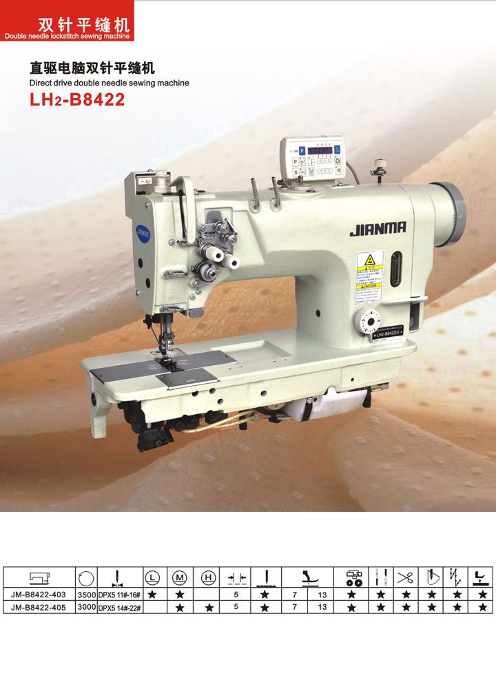采用進口件、原裝旋梭、低噪音、線跡穩。 使用日本進口齒輪,間隙小、噪音低、運轉平穩、傳遞精確。 進口針棒架材質好、精度高、耐磨性強、強度好,使針棒制針穩定性得到提高。