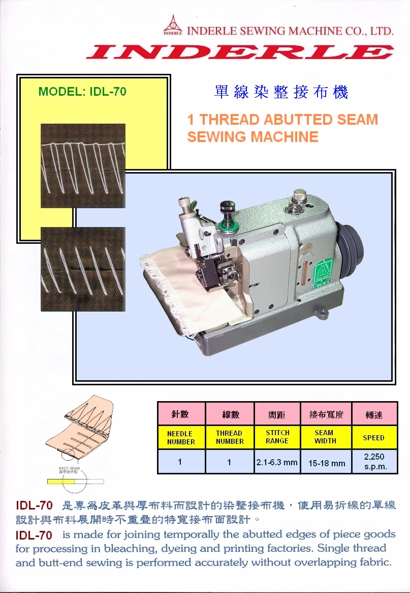 熱門產品: 益多利 IDL-70 1針1線染整接布機
