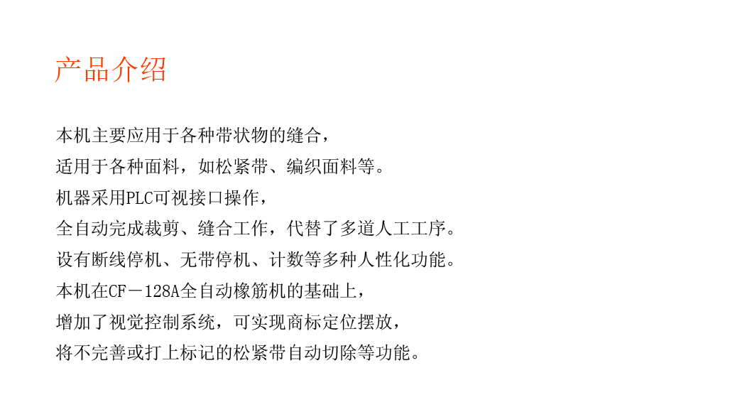 熱門產品: CF-128A 高速自動拼接橡筋機   CF-126B 全自動橡筋切帶機   CF-120H 全自動切斷機(熱刀)   CF—8133 全自動(襯衣)恤衫筒粘合壓平機   CF-600FP 氣壓式雙壓棍熱熔粘合機