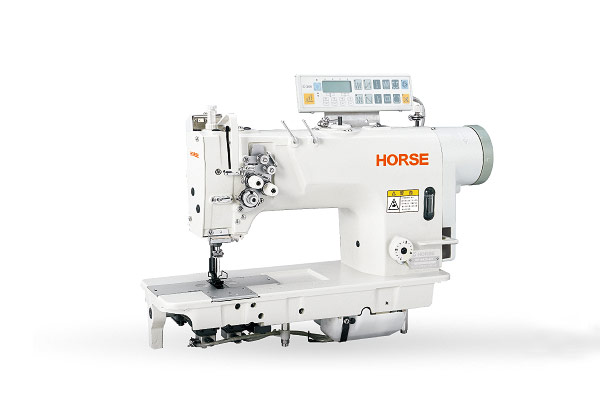 本機采用雙直針、立式自動加油,旋梭勾線,滑桿挑線,構成兩行雙線鎖式線跡;針桿采用機械式分離與聯合,上下軸采用滾珠軸承,同步齒形帶傳動,柱塞式油泵潤滑系統,采用針桿擺動與送布牙同步送料方式,旋鈕式標盤調節針距和杠桿式倒順送料機構,在梭芯內的縫線回拉彈簧,保證底線與面線得到一致的縫紉效果,適用縫制大衣、制服、牛仔褲、包袋、裝飾縫等。
