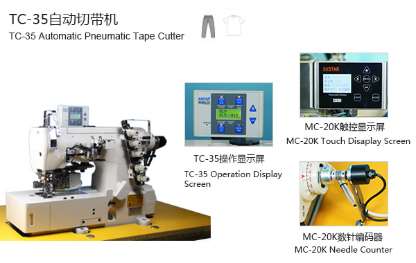 應用場景:針織服裝的圓領部位縫制、下擺鎖口包邊,胸圍泳衣肩帶,西褲牛仔褲褲耳的自動定長切斷。