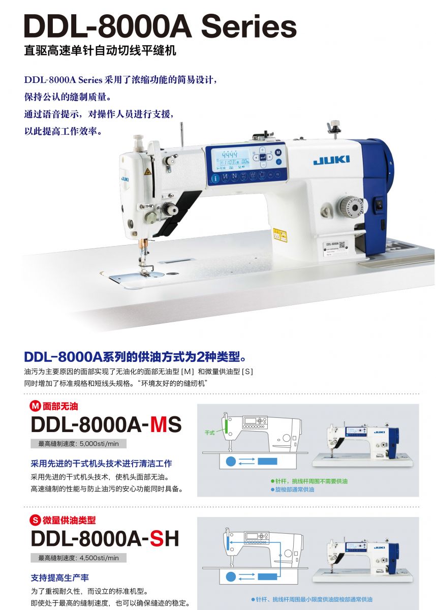熱門產品: JUKI DDL-7000A直驅單針自動切線平縫機   JUKI DDL-8000A直驅單針自動切線平縫機   JUKI DDL-9000C高速直驅平縫自動切線系統   JUKI LBH-1790ANB高速電子平頭鎖眼機(短線頭規格)   JUKI MO-6700DA高速無供油機頭包縫機/安全包縫機