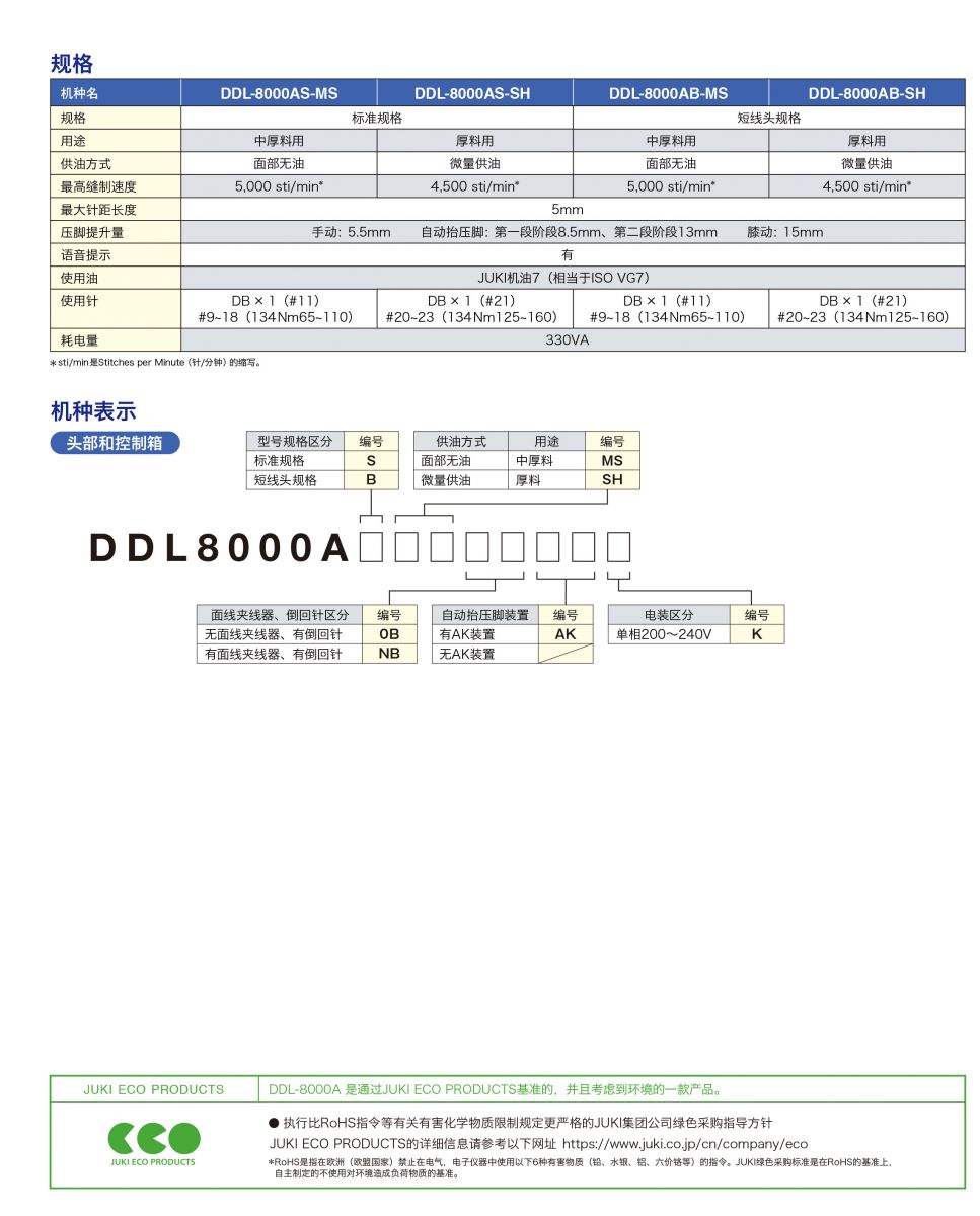 熱門產品: JUKI DDL-7000A直驅單針自動切線平縫機   JUKI DDL-8000A直驅單針自動切線平縫機   JUKI DDL-9000C高速直驅平縫自動切線系統   JUKI LBH-1790ANB高速電子平頭鎖眼機(短線頭規格)   JUKI MO-6700DA高速無供油機頭包縫機/安全包縫機