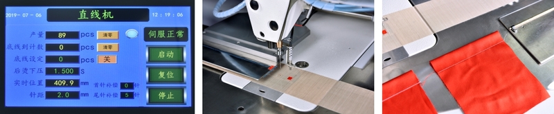 專利產品:折、縫、燙一體機,縫制的袋口平整、順直、一致性好。