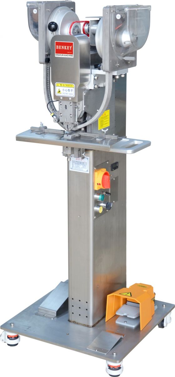 把鈕扣放進對應的2個料斗,開機會自動轉動料斗,自動把鈕扣排滿軌道,自動把鈕扣送到上下模具,伺服電機驅動,只要踩下踏腳開關便可裝訂自如,簡單易用。更換配件可以裝訂其它鈕扣。